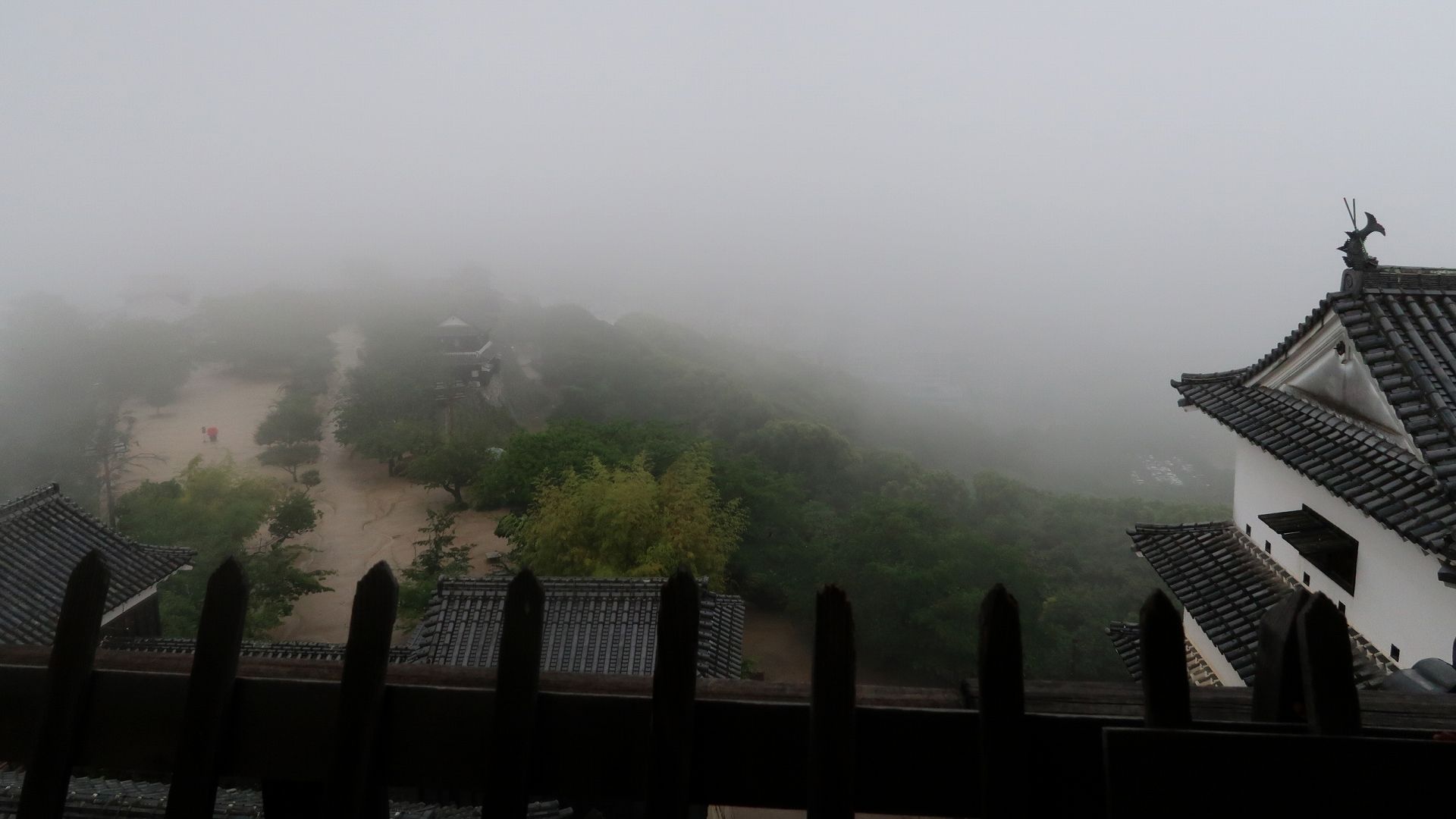 天守から見た大雨の風景
